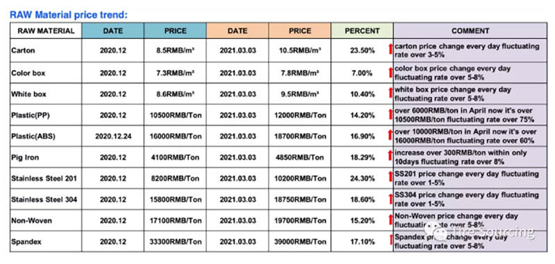 The price increase is caused by the raised raw material cost from Sep. 2020 and the shortage of raw material. All the manufacturers are trying to increase prices to recover the raised raw material inflation. Below is the Rubber trend and other raw material price trend for your reference.